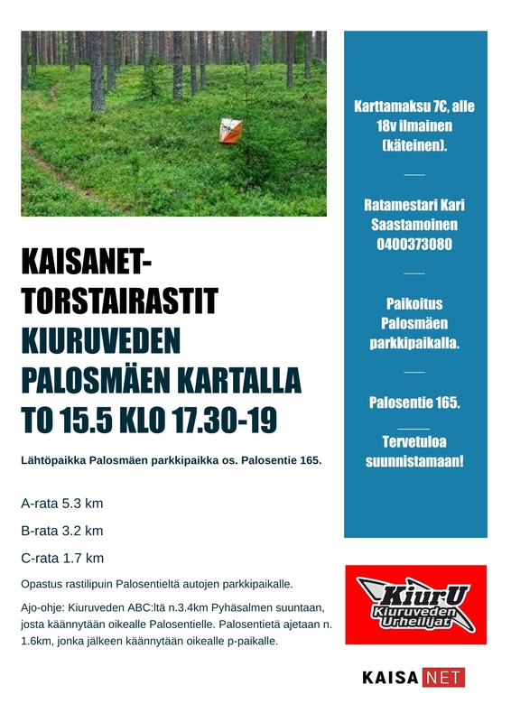 Kaisanet rastit Palosmäen maastossa klo 17.30-19.00