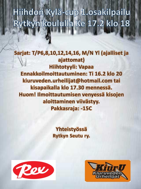 Huom! Kylä-cup hiihtokisasarja käynnistyy ennakkotiedoista poiketen ke 17.2 Rytkyn osakilpailulla vapaalla tyylillä