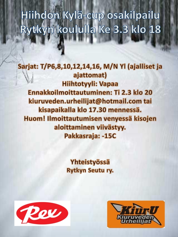 HUOM! Rytkyn kylä-cup hiihdot siirtyvät pakkasen takia pidettäväksi ke 3.3
