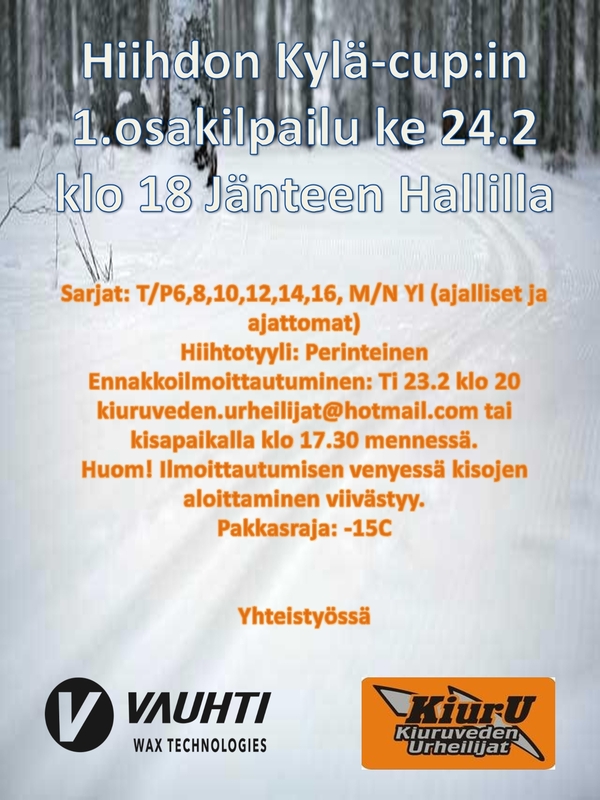 Hiihdon kylä-cup ke 24.2 klo 18 Jänteen Hallilla perinteisellä tyylillä