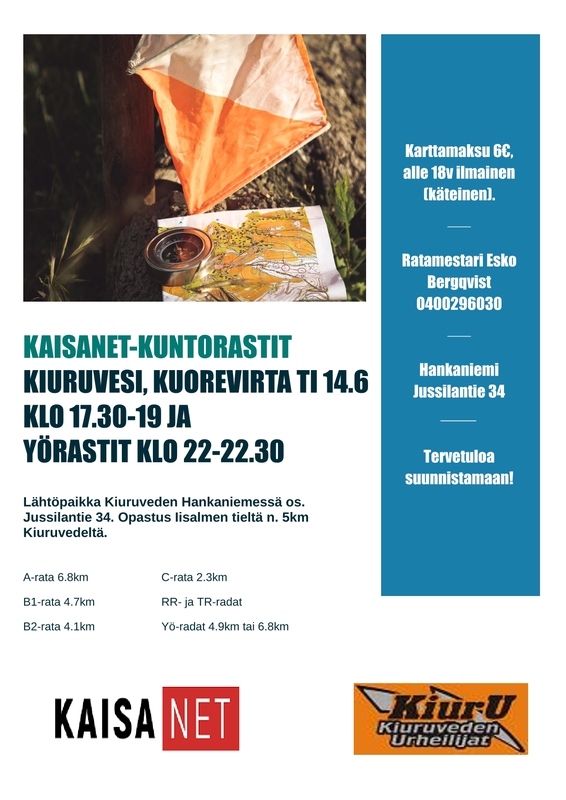 Kaisanet kuntorastit Hankaniemessä ti 14.6 klo 17.30-19 ja yö 22-22.30