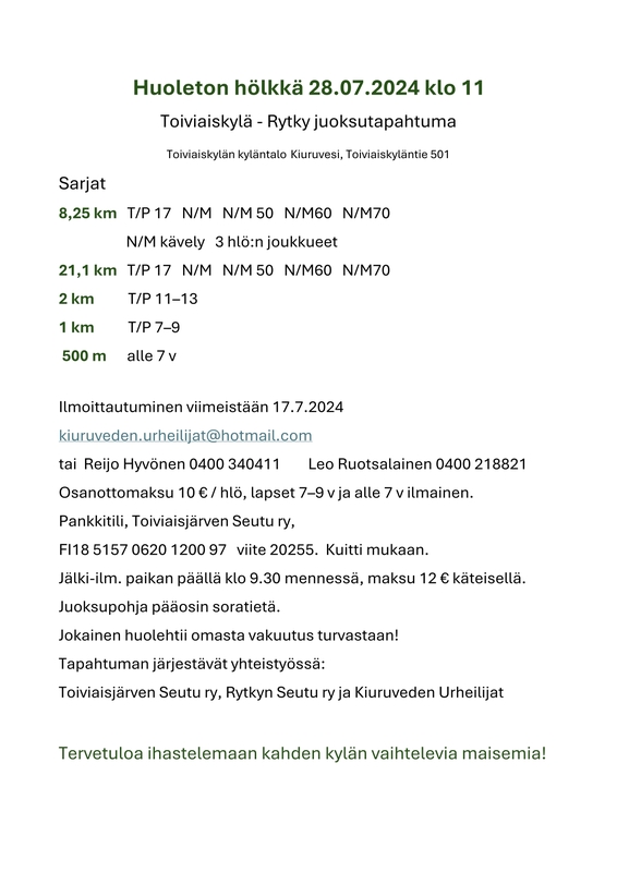HUOM! Huoleton hölkkä on siirretty pidettäväksi la 28.9.24 klo 11.00