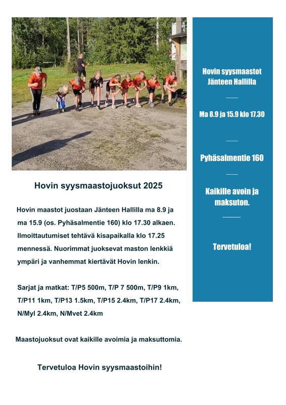 Hovin syysmaastot ma 8.9 ja ma 15.9 klo 17.30