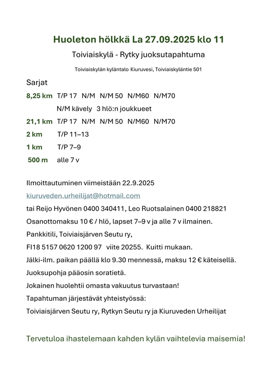 Huoleton hölkkä 27.9.25 klo 11.00