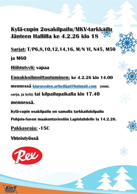 KYLÄ-CUP HIIHDOT JATKUVAT TÄNÄÄN ke 11.2 klo 18 Jänteen Hallilla vapaalla tyylillä.