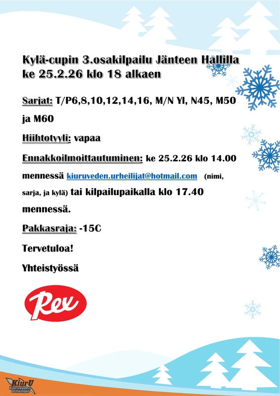 Kylä-cupin 3. osakilpailu Jänteen Hallilla ke 25.2 klo 18 alk.
