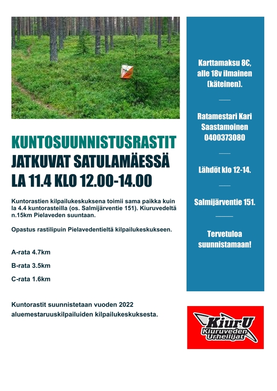 Kuntorastit jatkuvat Satulamäessä la 11.4 klo 12-14.