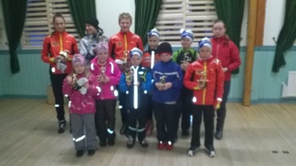 ![]() Kuvassa Kalliokylän Kylä-Cup:ssa palkittuja juniorihiihtäjiä. |