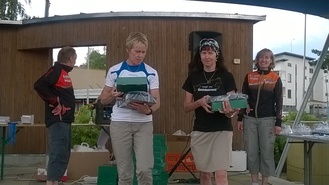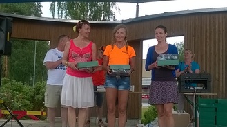![]() Naisten ykkönen Eveliina Mäyrä,Sari Kuutsa- Kettunen ja Marjo Palos | ![]() "Mäntylahden ikiliikkujat" |