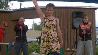![]() Naisten ykkönen Eveliina Mäyrä,Sari Kuutsa- Kettunen ja Marjo Palos | ![]() "Mäntylahden ikiliikkujat" |