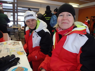 ![]() Farmiteamin hiihtäjät palkintojenjaossa | ![]() Perhesarjan osallistuneet joukkueet palkintojenjaossa |