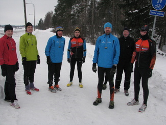 ![]() Helmikympin osallistujia. Satu,Anne,Pena,Arto,Petri,Tuomo,Väinö ja Tarjan (jalat) | ![]() Kankaanpään potretti |