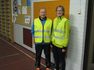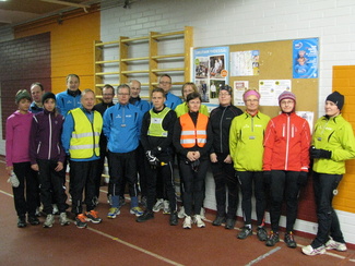 ![]() Pena ja Anne touhukkaat juoksukoulun vetäjät. | ![]() Kirmoojien joukko valmiina marraskuisen maanantain juoksulenkkiin. |