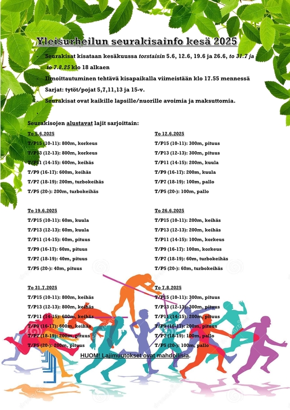Seurakisat ovat kaikille avoimia ja maksuttomia matalankynnyksen kilpailuita.
